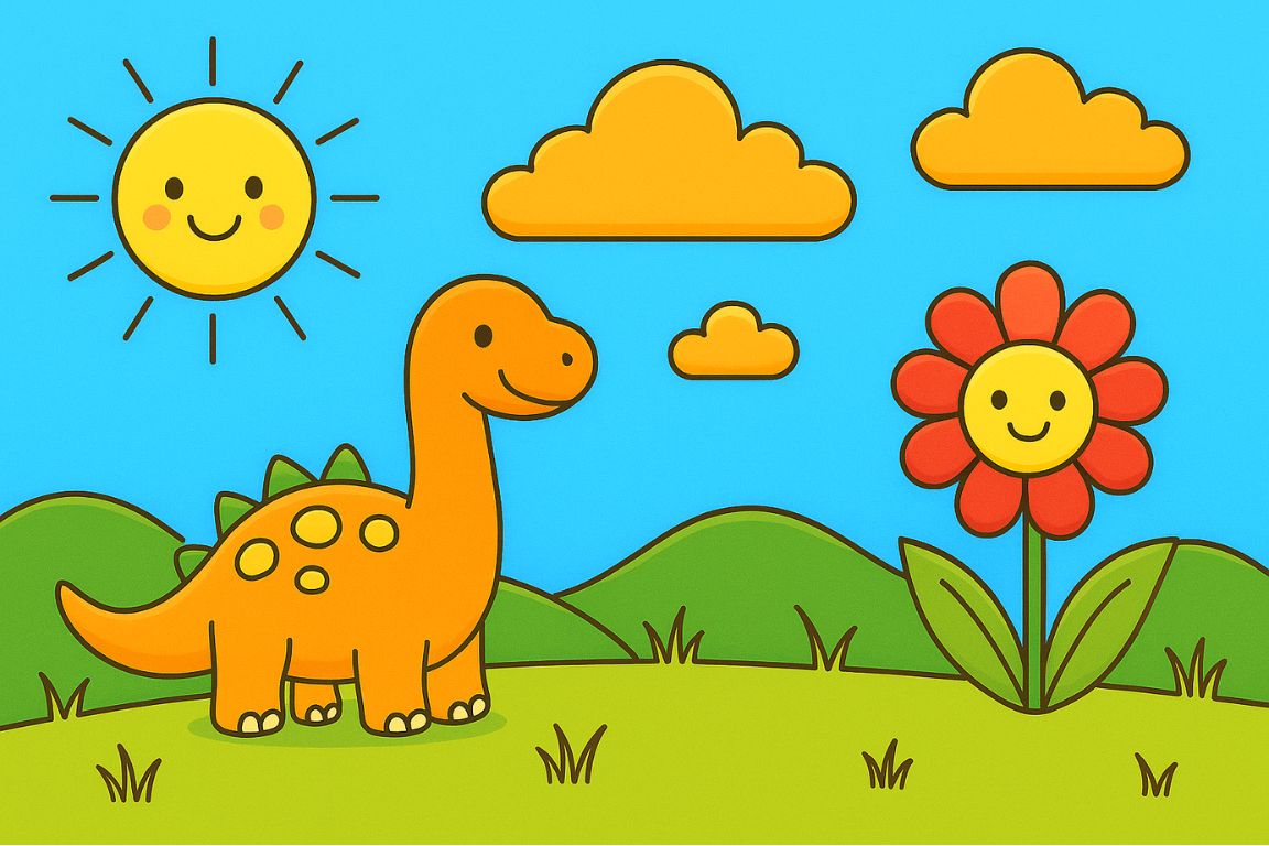 10336-塗り見本-にこにこ太陽と恐竜の楽しい一日1