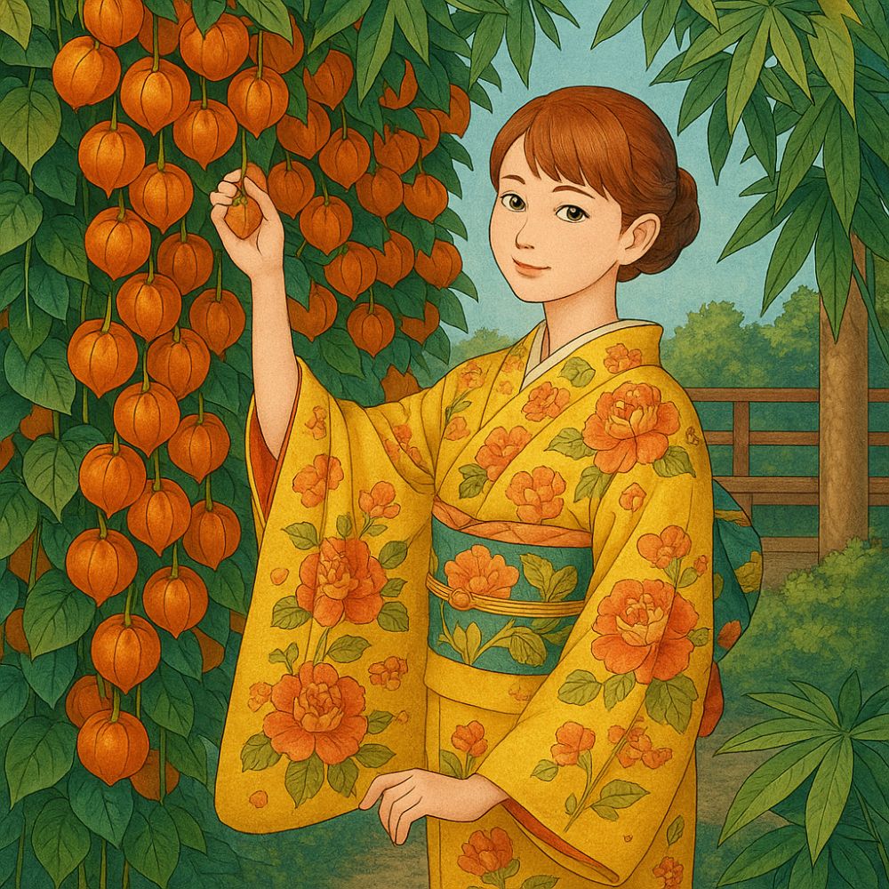 10346-塗り見本-ほおずきと夏着物の午後1