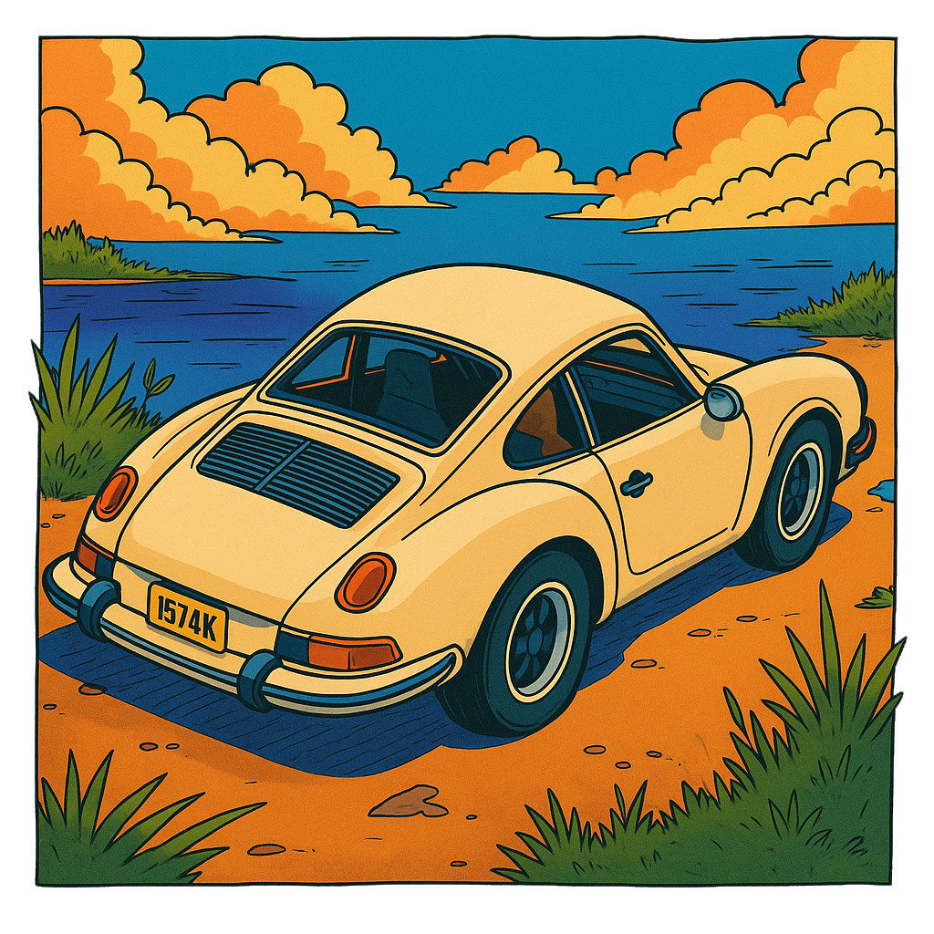 10391-塗り見本-クラシックカーと水平線