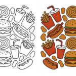 ファストフード好きにはたまらないこの塗り絵は、楽しくて気軽に取り組める中級者向けの一枚です。ハンバーガー、ホットドッグ、ポテト、ナゲット、ドリンクなどが曼荼羅のようにリズミカルに配置され、彩色によってポップで食欲をそそる仕上がりになります。鮮やかな色づかいで、ジャンクフードの明るくにぎやかな雰囲気を思いきり表現してみてください。リラックスタイムにもおすすめです。