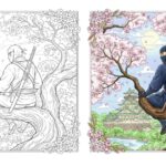 満開の桜の木の上で、忍者が静かに城を見下ろす印象的な塗り絵です。夕陽に照らされた城下町と流れる川、そして花びらが舞う穏やかな風景が、凛とした緊張感と美しさを同時に感じさせます。濃紺の装束や木の質感、桜の柔らかな色合いを丁寧に塗ることで、和の情緒と物語性がより深まります。静寂の中に息づく日本の美と忍の誇りを描いた、大人向けの情緒あふれる一枚です。