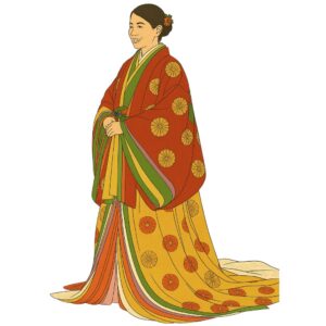 格調高い十二単が描かれたこの塗り絵は、上級者向けです。重ねられた衣の色の組み合わせや、菊紋の繰り返し模様を美しく塗り上げるには、丁寧さと配色センスが求められます。和の伝統美を存分に楽しみながら、じっくりと時間をかけて取り組んでみてください。完成したときの達成感もひとしおです。