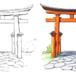 この作品『鳥居』は、神社の参道に立つ伝統的な木製の鳥居を真正面から描いた塗り絵素材です。静かに佇む二重の鳥居と、そこへ続く石畳の道が、まるで現実の神社を訪れているかのような厳かな雰囲気を醸し出しています。背景の木々は控えめに描かれており、鳥居の美しい構造美と木の質感を際立たせる構図です。色を重ねることで、時刻や季節、心の風景までも自由に表現できる一枚となっています。