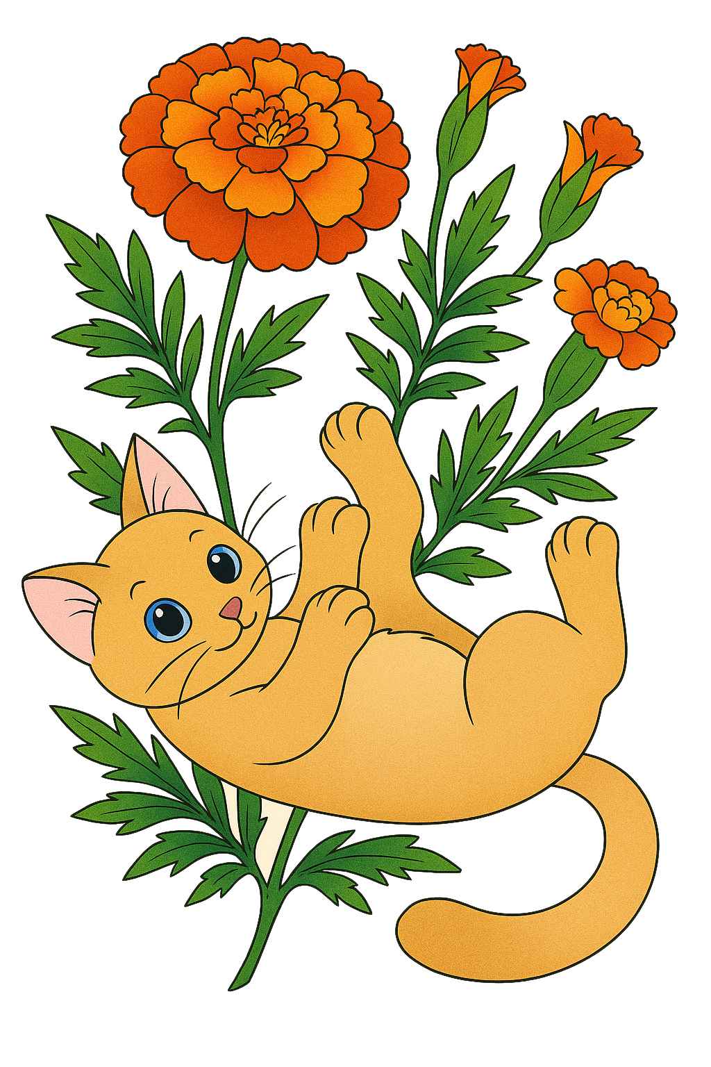 10325-塗り見本-マリーゴールドとごろり猫