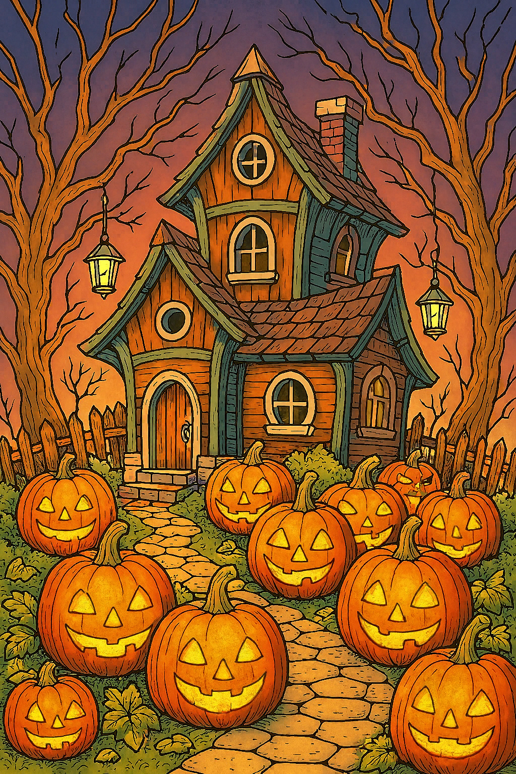 10435-塗り見本-ハロウィンの夜のかぼちゃ屋敷