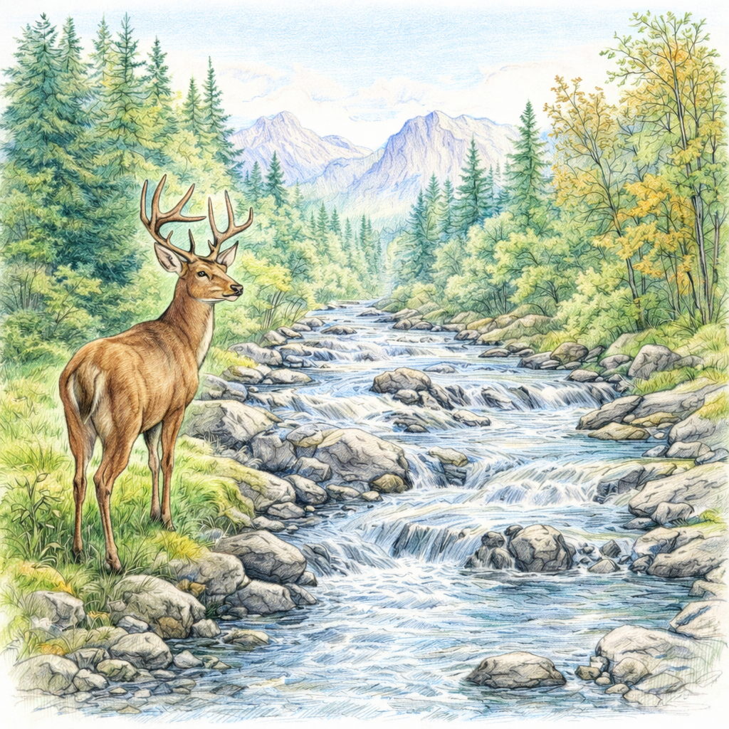 10467-塗り見本-渓流の鹿2