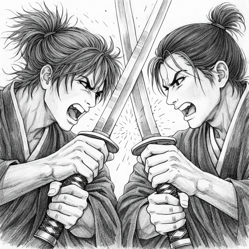 10472-塗り見本-侍の鍔迫り合い1