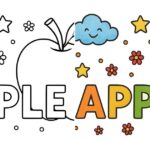 カラフルなリンゴのイラストと「APPLE」の文字が描かれた可愛い塗り絵。雲や星、花のモチーフが散りばめられ、子どもから大人まで楽しく彩れるデザインです。英単語学習や知育にもおすすめ。