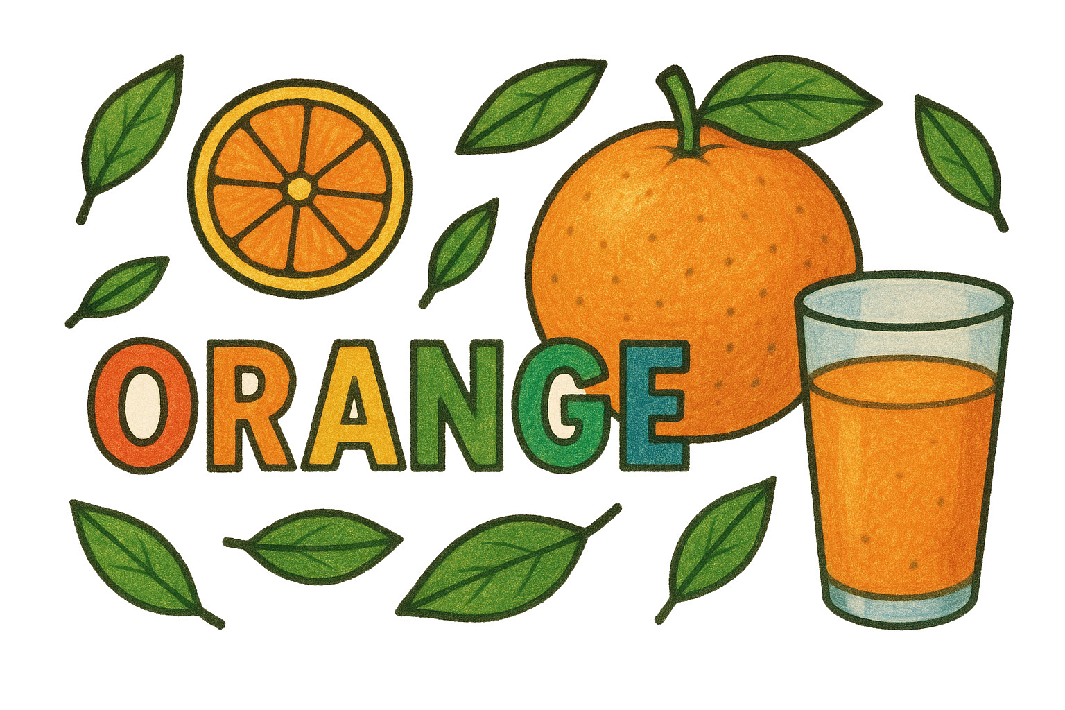 鮮やかなオレンジとジューシーな断面、さらにグラスに注がれたオレンジジュースを描いた塗り絵。瑞々しい果実と爽やかな緑の葉が彩りを添え、楽しく塗りながらフレッシュな気分を味わえるデザインです。